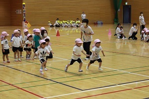 6月24日にアリーナで運動会を行いました。今年は、ぶどう組、れもん組、もも組が参加しました。