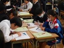 いつもの授業とは違って、たくさんの先生が教室にいる状況でしたが、意欲的に学習に取り組んでいました。