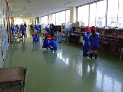 明日の卒業式に向けて、3~5年生が会場準備をしました。教室の飾りつけ、6年生が通るろうか磨き、いす並べ。感謝の気持ちをこめて活動しました。