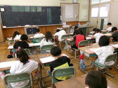 2年生は、新しい漢字を学習しました。1年生の時よりも難しくなる漢字ばかりですが、皆一生懸命に取り組んでいました。また、空中に空書きするときには、大きく腕を動かしていて覚えようとする気持ちが伝わってきました。