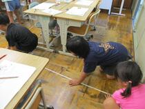3年生の算数は『長さ』の学習をしています。まきじゃくを使い、グループでよく協力しながら、教室のたてと横や黒板の長さをはかることができました。