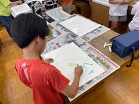 図工の学習では、画用紙に水を垂らす作業から始まりましたが、みんな心配そうな表情でした。絵具を指や筆で広げていくと、綺麗な模様が広がり、綺麗な作品ができあがりました。