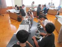 5年生は、理科で「植物の実や種子のでき方」を学習しています。その学習の中で、顕微鏡を使って、アサガオやユリの花粉を観察しました。子供たちからは、「丸くて、トゲトゲしている。」や「アサガオとユリでは、花粉の形が違った。」という声も聞こえ、とても活発に活動していました。