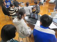 5年生は、外国の先生たちとオンライン英会話を行いました。これまでに学習したフレーズやジェスチャ-を用いながら、とても積極的に会話をしていました。