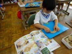 6年生は、図工で「くるくるクランク」の学習をしています。くるくる針金を回していくと恐竜の口がパクパクしたり、ボールや花が動いたりする仕掛けを作っていました。飾りを工夫しながら、楽しんで作品作りをすることができました。