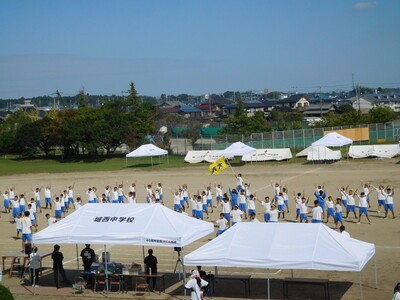 9月26日は3校時学年練習、4校時縦割り練習、5・6校時団練習が澄んだ空の下、行われました。