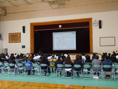 11月21日(金曜日)授業参観が行われました。1年生では国土交通省 関東地方整備局 利根川下流河川事務所の協力を得て、水防災教室が行われました。城西中学校区の水防災の必要性を自分事として捉えることができ、有意義な時間となりました。