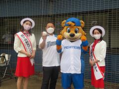 また、試合の盛り上げ役として、始球式の大役を務めたり、景品プレゼントのため、ビックパチンコでボールを客席に発射するなど、大活躍でした。
