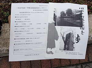 水戸街道は江戸から水戸まで約116キロメートル、20の宿場があり、23家の大名行列が「下に~下に~」(実際は言わないそうですが)と通ったそうです。松戸は3番目の宿場で、龍ヶ崎には8番目の若柴宿がありました。あの立派なお屋敷のある通りは宿場だったのか~、ツアーでもやってほしいな~と思ってたら、広報に載ったんですよ、龍ヶ崎市民会議・文化環境部会主催「旧水戸街道若柴宿を歩く」という記事が!