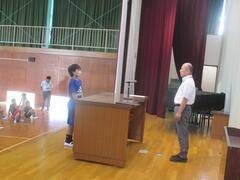 集会の最後に教育実習生からあいさつがありました。本日から29日まで研修します。よろしくお願いします。