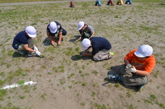 5月23日,昼休みに全校で草取りをやりました。土曜日にPTAの奉仕作業があり,学校がとてもきれいになりました。そこで,児童のみなさんも校庭をきれいにしようと,一生懸命がんばりました。暑い中でしたが,よく働く北文間小の子供たちです。