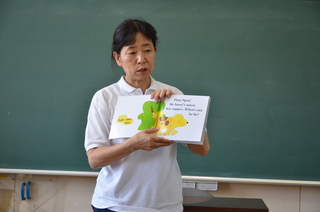 アンディ先生から絵本の解説をしてもらいました。みんな真剣な表情。教員も勉強の教え方で悩んでいるんですね。