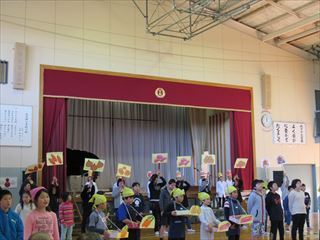 「飯塚古登さん」の劇を全校児童で行いました。劇の最後には,本校職員による作詞,作曲「ありがとう古登さん」を合唱しました。