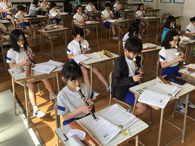 廊下を歩いていると「エーデルワイス」の演奏が聞こえてきます。のぞいてみると、3年生の音楽の授業でした。春に購入したリコーダーですが、1年もしないうちにみんな上手になったなあと思いながら聞いていました。上下のパートに分かれて演奏するなど、1年間の成長が感じられる姿に嬉しくなりました。