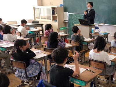 3年生の教室から楽しそうな手拍子が聞こえてきました。教室をのぞいてみると、音楽の授業でリズム打ちをしていました。先生と合わせたり、友達どうして合わせたりして楽しそうな様子です。体全体で音楽を感じるのも楽しいですね。