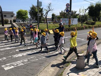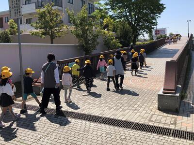 今日も1年生の話題になりますが、4/19に交通安全教室を行いました。1年生がよく使う信号や交差点、歩道橋を実際に歩きながら、安全に登下校するためにはどんなことに気をつければよいかを確認しました。子供たちは「右見て、左見て、もう一度右見て」と言いながら、自分自身で安全を確かめることができました。