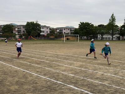 5年生の体育では、50m走の記録を計っていました。走るのが苦手な子もいるかもしれませんが、大切なのは全力を尽くすことです。先生や友達の励ましを受けながら、懸命に走る姿が印象的でした。去年よりも記録は伸びたのでしょうか。