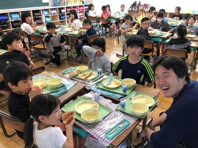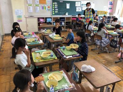 久保台小学校では、給食でのグループ会食を再開しました。ここ数年、前向きの並びで給食を食べていたので、どのクラスも笑顔で楽しそうに食べているように感じます。互いに顔を見ながら楽しく会食することで、給食の味もよりおいしく感じたのではないでしょうか。