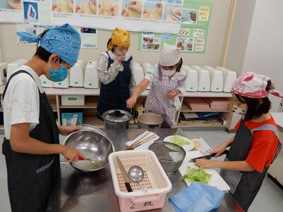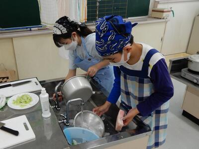 先週、5年生は調理実習に取り組みました。今回は「ゆで野菜サラダ」です。キャベツやニンジンなどをゆでて、手作りのドレッシングをかけます。包丁を使った実習は初めてでしたが、ケガもなく安全にできたようです。もちろん味もバッチリで、普段野菜が苦手な子からも「おいしい!」という声が聞こえてきました。