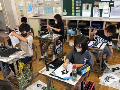 5年生の習字の時間には、ほとんど話し声は聞こえてきません。どの子も集中して課題に取り組んでいます。丁寧に字を書くことで、心を静め、落ち着いた態度で学習できます。お手本のように上手に書けたかも大切ですが、学習に臨む態度も同じくらい大切だと思います。今後も続けてほしいものです。