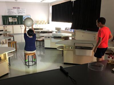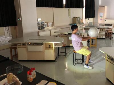 6年生の理科「月と太陽」の単元では、月の満ち欠けが起きるわけを実験で解明しようとしています。ライトを太陽、ボール(月球儀)を月に見立てて実験しました。月と太陽の位置関係によって月の形が変わることを自分の目で確かめました。不思議に思ったことを実験・観察を通して解明するのが理科の楽しさです。