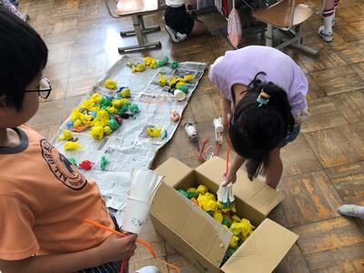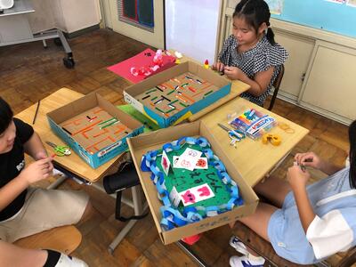 2年生の生活科では、おもちゃ作りに取り組んでいます。迷路やUFOキャッチャーなど、工夫を凝らして楽しく制作していました。完成したら1年生を招待して一緒に遊ぶ計画もあるそうです。きっと1年生は大喜びですね。