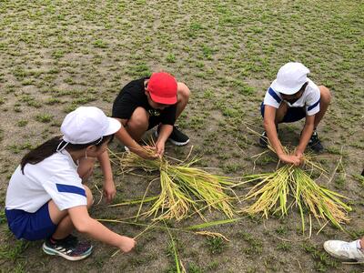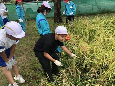 9/21に5年生は米づくり体験の一環として稲刈りをしました。6月に田植えをして、成長を見守ってきた大切な「久保台米」です。今回も地域の方を講師にお迎えして、稲刈りの仕方を教わりながら実施しました。今年も大豊作だったとのことで、後日行うおにぎり作りを楽しみにしながら収穫していました。