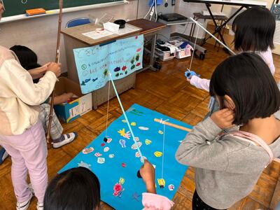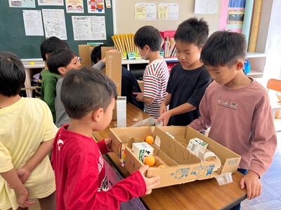 10/12に、生活科で、2年生が1年生を「おもちゃで遊ぶ会」に招待しました。2年生は、これまでの生活科の時間を使って、ぶんぶんごまやぴょんかえるなどの遊びを準備してきました。1年生に優しく教えながらいっしょに遊ぶ2年生の姿は頼もしく、お兄さんお姉さんの顔つきをしていました。折り紙などの景品ももらって、「とても楽しかった!」と笑顔を見せてくれた1年生が、来年に楽しい会を開いてくれることを願っています。