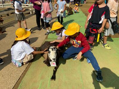 10月27日、成田ゆめ牧場に1年生が遠足に行ってきました。待ちに待っていた子どもたちは、朝から興奮していて、「遠足!遠足!」のコールが巻き起こっていました。ゆめ牧場に着くと、グループごとにアスレチックに挑戦し、他の学校の子どもたちとも仲良くじゃんけんをして遊ぶ微笑ましい姿を見ることもできました。動物を触るのも最初はおそるおそるでしたが、だんだん慣れてお気に入りのヤギやヒツジと写真も撮ることができました。お昼には、ゆめ牧場の牛乳からできたアイスもおいしく食べて、思い出に残る楽しい遠足になったと思います。お弁当を始め、さまざまな準備にご協力いただき、ありがとうございました。