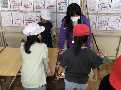 今日と明日、中根台中学校の2年生3人が職場体験で久保台小に来ています。朝のうちは緊張した様子でしたが、だんだんと子供たちとも仲良くなり、休み時間には楽しく遊んだり、協力して掃除をしたりする姿が見られました。2日間という短い時間ですが、たくさんのことを学んでいってほしいと思います。