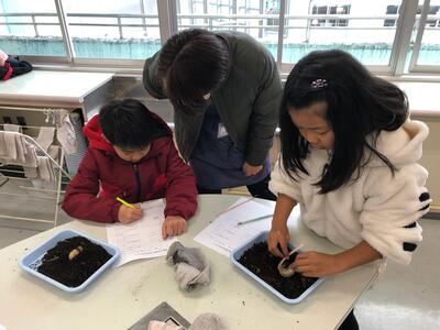 12月19日に4年生が環境学習を行いました。前半ではカブトムシの幼虫の重さや大きさなどを調べ、後半では幼虫が育ちやすい環境を作るにはどうしたらいいかをグループで考え、まとめました。普段見ることのない幼虫の大きさに驚いたり、新たな発見をしたりと児童が興味を惹かれる時間でした。これからも様々なことに興味を持って考え、積極的に取り組んでほしいと思います。