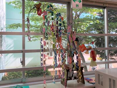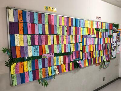 今日は七夕。給食では、お星さまコロッケやゼリーが出ました。久保台小では、七夕にちなみ、昇降口前には七夕の短冊が掲示されていたり、1年生のオープンスペースには七夕飾りが飾られたりしていました。久保台っ子のお願いを見ていると、自分のこと、友達のこと、家族のこと、世界中のみんなのこと、様々なお願い事が書かれていて嬉しい気持ちになりました。みんなの願い事が叶いますように…。