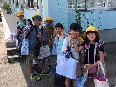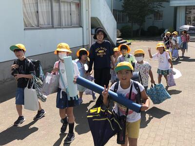 明日から夏休みです。荷物をたくさん抱えていても、夏休みのワクワクでみんな笑顔です。たくさん遊んで、たくさん食べて、たくさん寝て、元気いっぱいな夏休みを過ごしてほしいものです。もちろん、宿題はさっさと終わらせて、夏休みの終わりに後悔しないようにしてくださいね。9月1日にまた元気な笑顔で会いましょう!