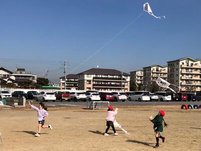 今日から2月。職員玄関のお花も節分モードです。1年生は晴天のグラウンドで凧揚げにチャレンジしていました。手作りの凧を飛ばすために走り回る姿はとても微笑ましいものでした。初めて凧揚げをする子もいたようで、糸がからまるなどのハプニングもありましたが、楽しい時間を過ごせたようです。