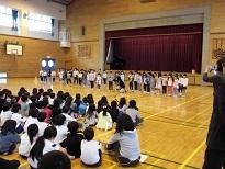 6年生と一緒に入場してきた1年生。学校生活にも慣れ,勉強に運動に毎日元気に過ごしています。今日は,改めて,入学をお祝いする会を開きました。〇×ゲームで楽しんだ後,全校で久保台小学校の校歌を歌いました。心温まる優しい気持ちになったひとときでした。