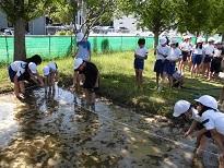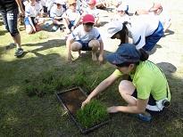 5月30日(木曜日)の5,6時間目に田植えをしました。グランドの西側に小さな田んぼがあります。ゲストティーチャーの佐藤さんからご指導をいただき,代かき,田植えを体験しました。苗を手にしたときのわくわく感,一本一本を手植えしたときの緊張感がしっかりと伝わってきました。自分たちの手で育てることの大切さを感じたことともいます。これから秋の収穫まで,責任を持って取り組んでいけるよう,子どもたちと一緒に学んでいきたいと思います。
