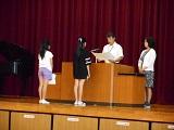 4月にスタートした1学期も,あっという間に終業式の日を迎えました。今年は,まだ「梅雨明け宣言」は出ませんが,1学期にがんばって学習や運動に取り組んできた充実感と,まちにまった夏休みが明日から始まるというワクワク感で,子ども達の表情もキラキラしていました。式中も,落ち着いた態度で臨むことができました。