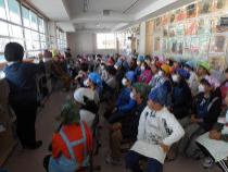 先生の説明を聞いています。