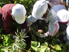 つるの下からおいもを発見しました。