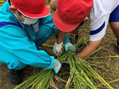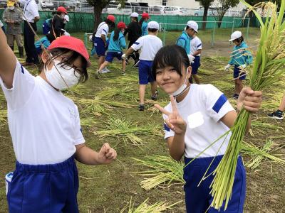 5年生が校庭で大切に育てていた「久保台米」を収穫しました。稲刈りの仕方や干す時の縛り方をゲストティーチャーの先生方に教わり、たくさんのお米を収穫することができました。子供たちは豊作に大喜びです。今回収穫したお米で、おにぎりは何個くらいできるのでしょうか?