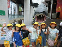 3年生のバス遠足では、坂東市の自然博物館を散策しました。午前中は、館内で様々な展示を見学しました。特に、動く恐竜の展示では迫力満点の恐竜が、作り物と分かっていても驚いてしまう児童も見られました。昼のお弁当は、広々とした芝生の上でみんなで仲良く食べました。午後は、グループごとにコースに分かれ、クイズの正解を探しに行きました。全部回り切れなかった児童からは「また来たーい!」という声が上がっていました。