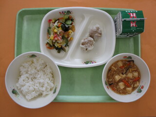 ご飯・牛乳・しゅうまい・オーシャンサラダ・マーボー豆腐