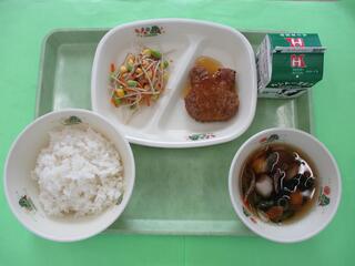 ご飯・牛乳・ハンバーグりんごソース・ごぼうサラダ・お月見汁
