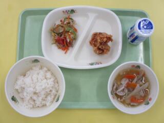 ご飯・発酵乳・鶏肉のから揚げ・りっちゃんサラダ・豚汁