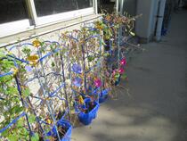 1年生が夏休みに持って帰ったアサガオが戻ってきました。まだ、咲いているものもありました。このあと、クリスマスリースを作ります。楽しみですね。