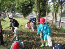1年生が生活科の学習で、長山小学校の児童と一緒に若柴公園の探検をしました。