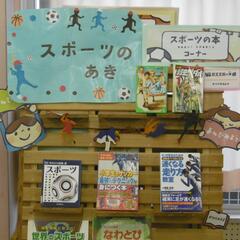 図書室の掲示物は「スポーツの秋」が紹介されています。