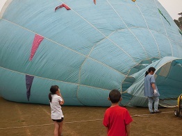 大きな気球が徐々に膨らんでいき,空中に浮かぶ様子は壮観でした。