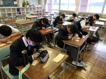 本日は、茨城県立入試でした。3年生は無事に受験できたようです。1・2年生は、実力テストを行いました。