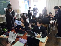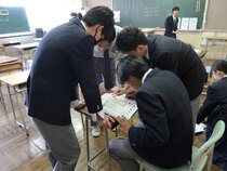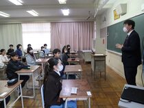 教育委員会の皆様が来校され、本校の生徒の様子や授業を参観されました。ご訪問いただいたのは、教育長、教育委員、教育次長、教育監、指導主事等の6名で、全教員の授業をご参観いただきました。教育委員会の皆様は、生徒たちの真剣な学びの姿に感心されていました。また、市内の小中学校からも多数の先生方が授業参観に来校されました。放課後、指導主事の先生方から、一人一人に授業の指導をいただきました。